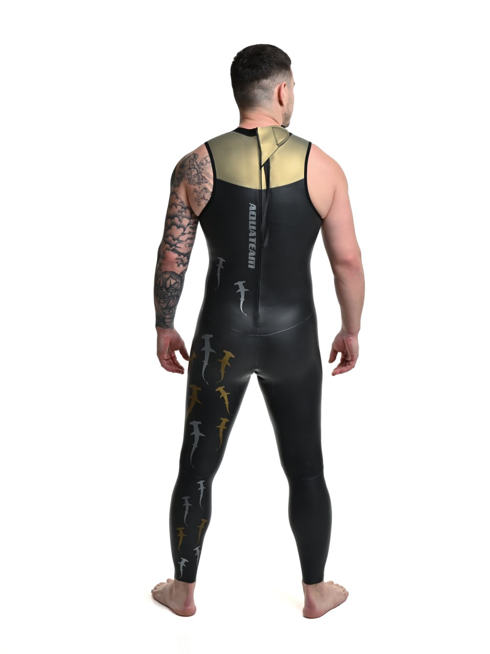 Анатомичный крой костюма обеспечивает идеальную посадку и свободу движений, позволяя вам сосредоточиться на тренировках без каких-либо ограничений. Воротник-стойка обеспечивает дополнительную защиту, а проймы, обработанные эластичной лентой, минимизируют попадание воды, что делает каждую тренировку более комфортной.